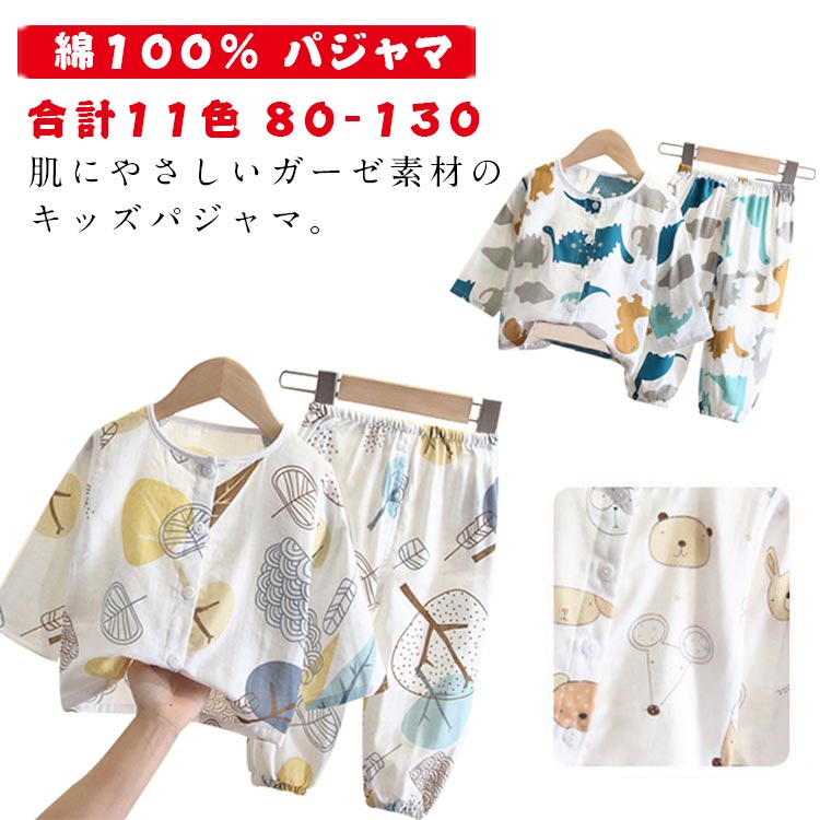 子供服 120 上下セット 綿100% ガーゼ 80 ボタン 長袖 子供 男の子 ベビー パジャマ 90 100 春夏秋 女の子 キッズ 110 前開き おしゃれ かわい 130cm