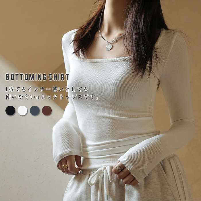 カットソー 長袖 レディース きれいめ クエアネック トップス インナー 薄手 春秋 無地 プルオーバー ふんわり 柔らかい 着痩せ おしゃれ 普段着 ソフト オフィス 通勤 シンプル 白 ビジネス