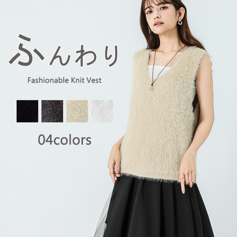 シャギー ベスト ニットベスト レディース 秋冬 シャギーニット シャギーベスト ベスト ニット ネック レイヤード シャギー ジレ トレンド トップス