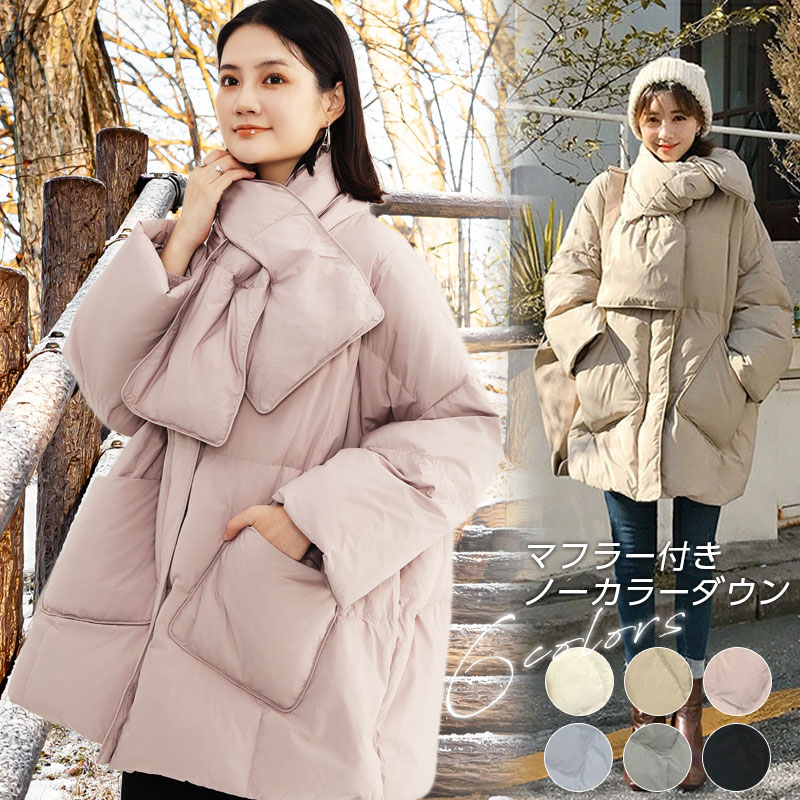 ダウン90% ダウンジャケット軽量 マフラー付き ノーカラー ダウンコートダウンジャケット ダウン&フェザー 襟なし アウター カジュアル 通勤 コート