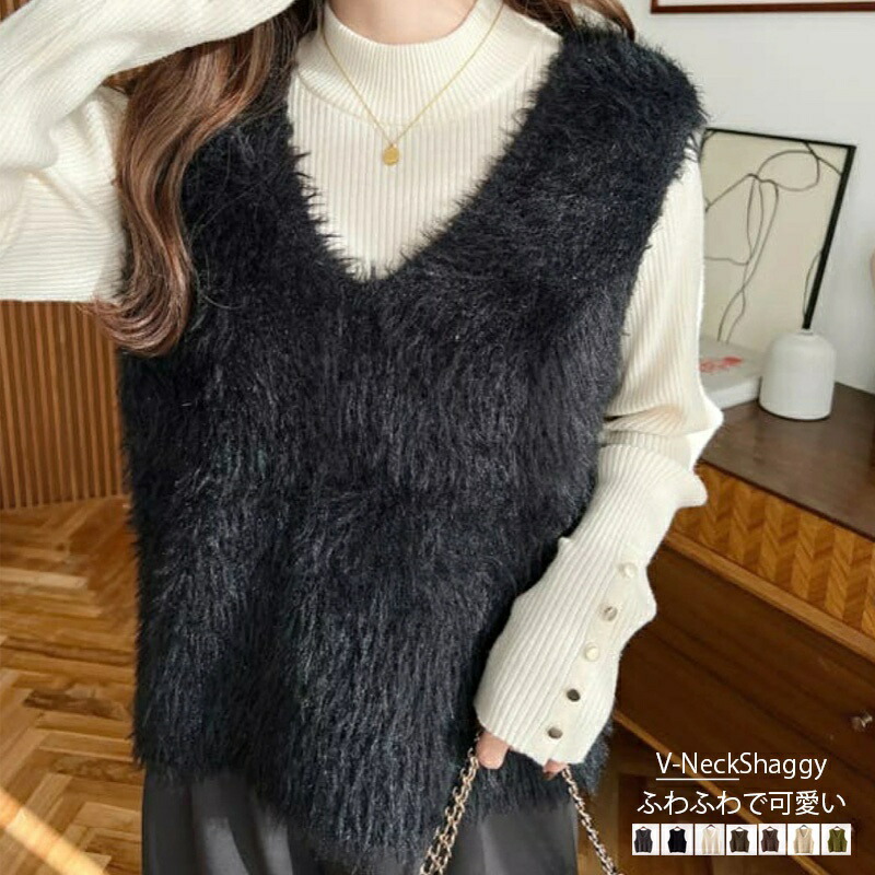 シャギー ベスト ニットベスト レディース 秋冬 シャギーニット シャギーベスト ニット Vネック レイヤード ジレ トレンド トップス 毛足長め プルオーバー セーター ノ モヘア
