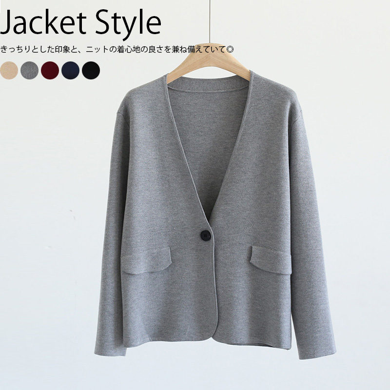 ジャケット レディース 秋 冬 ニット Vネック カーディガン 秋冬 長袖 羽織 20代 30代 40代 50代 ニットジャケット 羽織り ゆったり 体型 アウター