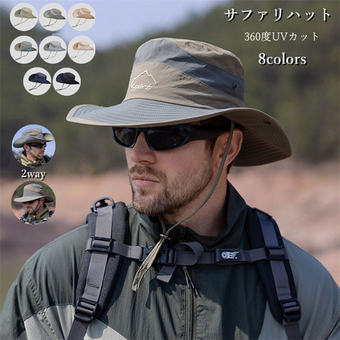 サファリハット 帽子 メンズ uv カット キャップ 農作業 2way 日よけ 防止 男性 つば広 吸汗速乾 紫外線対策 男女兼用 大きいサイズ 撥水 360度UVカット サンバイザー 運動会