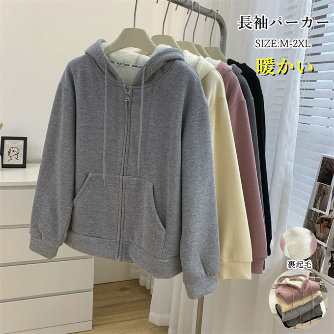 長袖パーカー レディース トレーナー スウェット フード付き 裹起毛 あったか アウター 秋冬