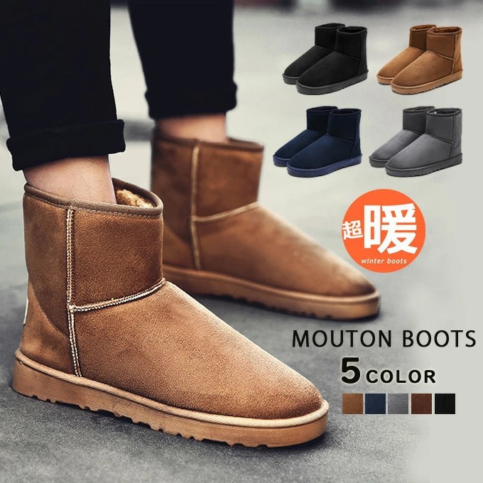 メンズ ムートンブーツ ショートブーツ モカシン 屈曲ソール 秋冬 靴 シューズ 防水 ショート ブーツ 男性 おしゃれ ブラウン ブラック ファー ボア 内ボア 冬 秋 あ 防寒