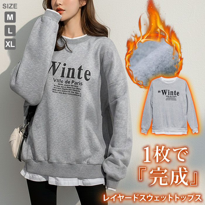 裏起毛トップス レディース 秋 冬 秋冬 長袖 裏起毛 トップス 裏起毛スウェット 裏起毛トレーナー 大きめ ゆったり トレーナー ロゴ 防寒 あったか グレー カジュアル 20代 30代 40代