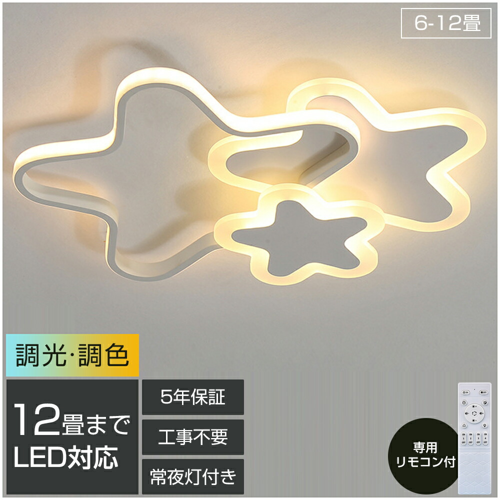 LED シーリングライト 6畳 8畳 10畳 12畳 調光調色 リモコン付き 子供部屋 常夜灯 引掛対応 工事不要 照明器具 照明 電気 星 シンプル 可愛い 室内照明 幼稚園 保育園 学 クラシック