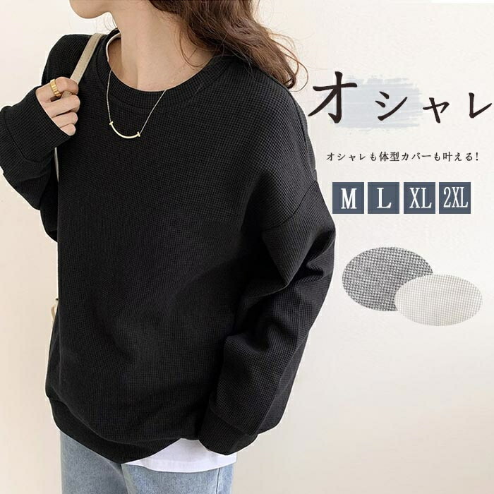 プルオーバーパーカー スウェット レディース パーカー ワッフル トップス カットソー ロンT 春 ゆったり 長袖 春秋 ラウンドネック 無地 シンプ 長袖スウェット