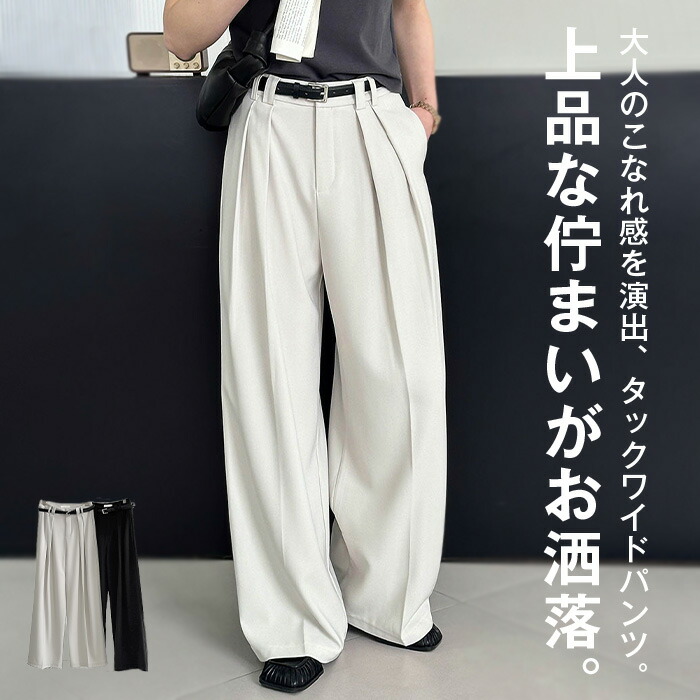 『大人の上品高見えコーデ』無地 長ズボン ワイド ゆったり シンプル ロングパンツ 上品 きれいめ タックパンツ 体型カバー 細見え 着痩せ 大きめ