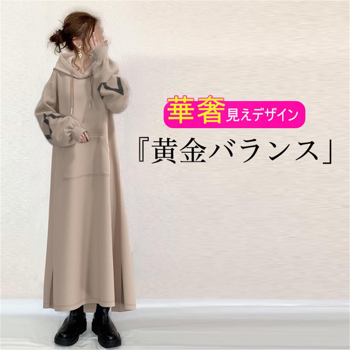冬ワンピース レディース パーカーワンピース ロングパーカー ドレス 秋服 冬服 ニット袖 ドッキング フッド付き マキシ丈 カジュアル ゆったり シンプル 可愛い オシャレ 大人 春 秋 着痩せ