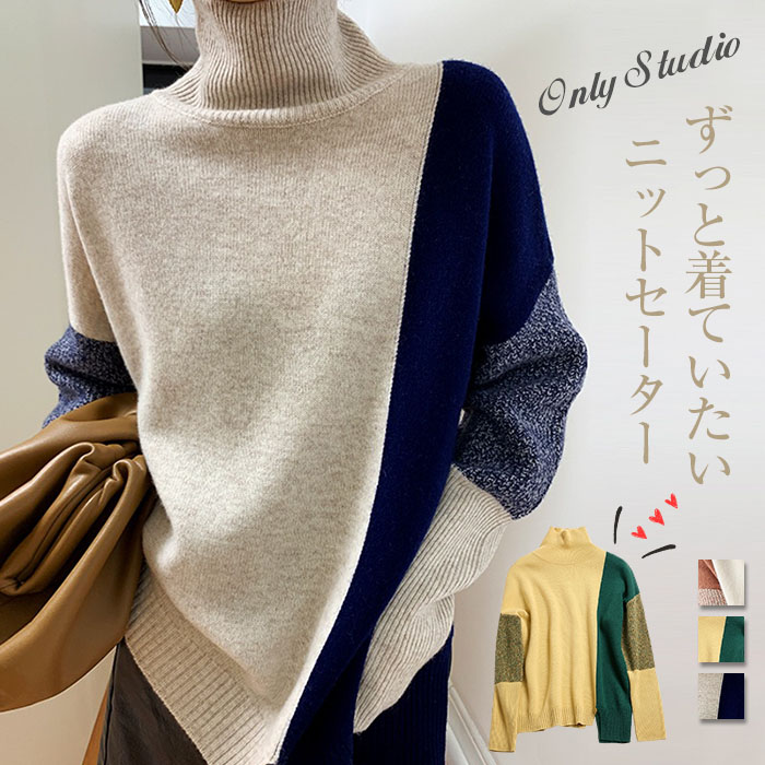 【送料無料◎宅配便発送】ニット セーター レディース ニットソー 秋 冬 セーター トップス 長袖 タートルネック ハイネック プルオーバー ニットセーター バイカラー 送料無料