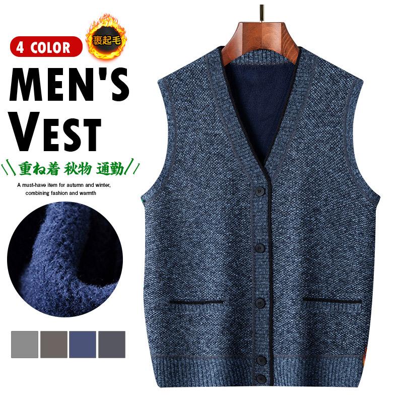 ベスト ニットベスト メンズ 秋冬春 前開き 裏起毛 セーター チョッキ ゴルフウェア カジュアル ジレ vニック 秋物 ビジネス 通勤 重ね着