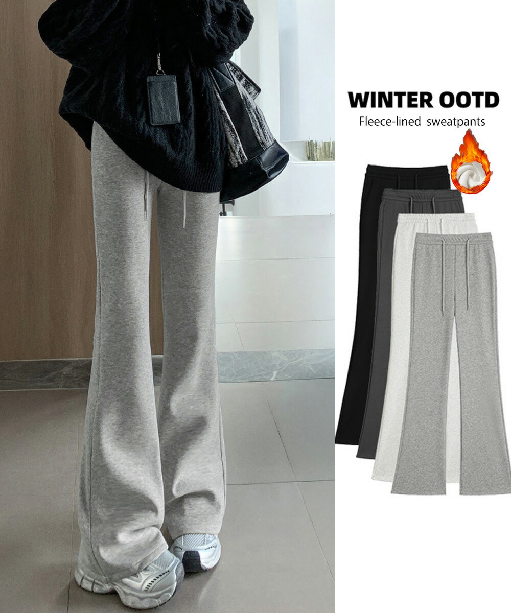 スウェットパンツ 裏起毛フレアパンツ美脚 おしゃれ あったたかパンツ ハイウエストイージーパンツ ウエストゴム 着やせ 運動スポーティパンツ厚手 86LJ カジュアルズボン