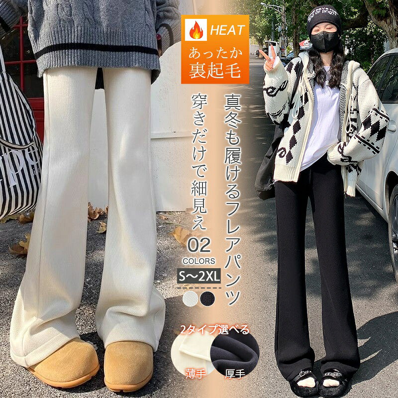 フレアパンツ リブニットパンツ 裏起毛/裏起毛なし レディース ボトムス あったか フレアパンツ レギンスパンツ 細見え 防寒 リラックス 楽ちん ロングパンツ