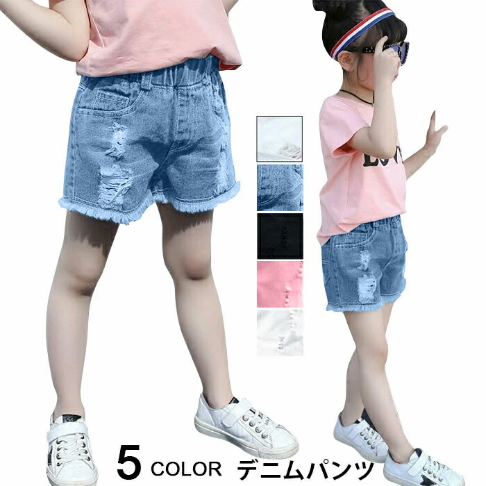 ≪夏の新作≫ キッズ デニム ショートパンツ ショーパン ダメージ ジーンズ パンツ ボトムス 幼稚園 小学生 子供服 女の子 ガールズ 女児 おしゃれ ジュニア 110 120 130 140 150 160