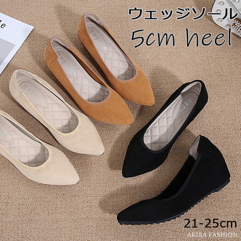 究極のプレーンパンプス ポインテッドトゥ ウエッジソール 5ヒール!