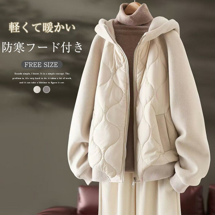 コート レディース 秋冬 パーカー フード付き キルティングコート 厚手 ミドル丈 中綿コート 大人 無地 切り替え ジャケット ブルゾン 防寒 暖かい 秋コート 冬コート アウター 長袖