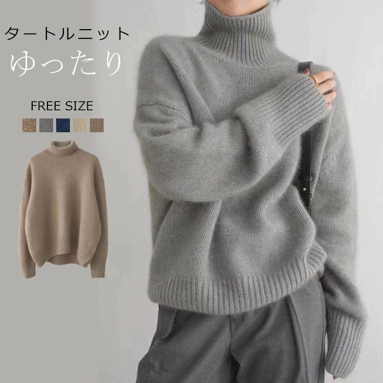 ズルい… 小顔 華奢感出る チクチクしない オーバー ニット タートルネック タートルニット レディース セーター ビッグシルエット シンプル ボトルネック リブニット