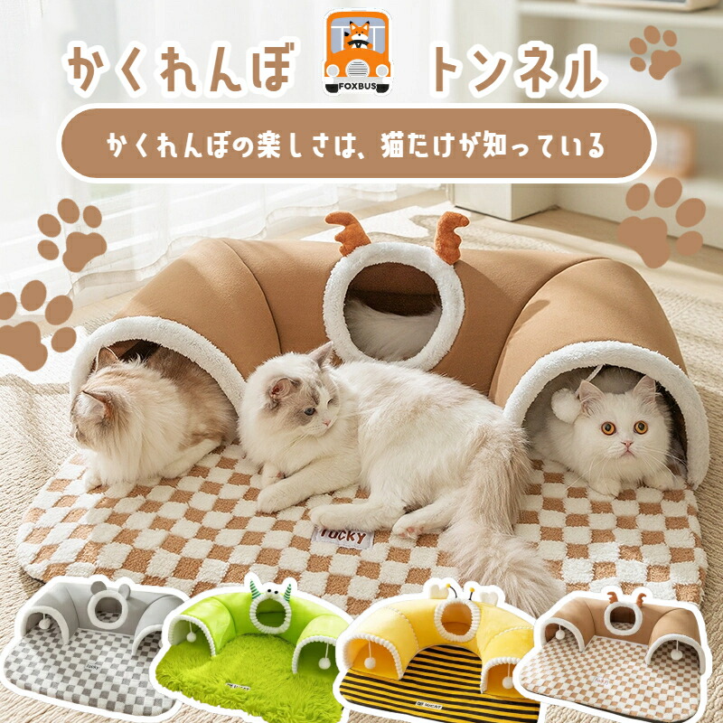 猫 ベッド 秋冬 トナカイ かくれんぼ トンネル 遊ぶ 寝る 一体型 ペットハウス 保温 洗える 折りたたみ 防寒
