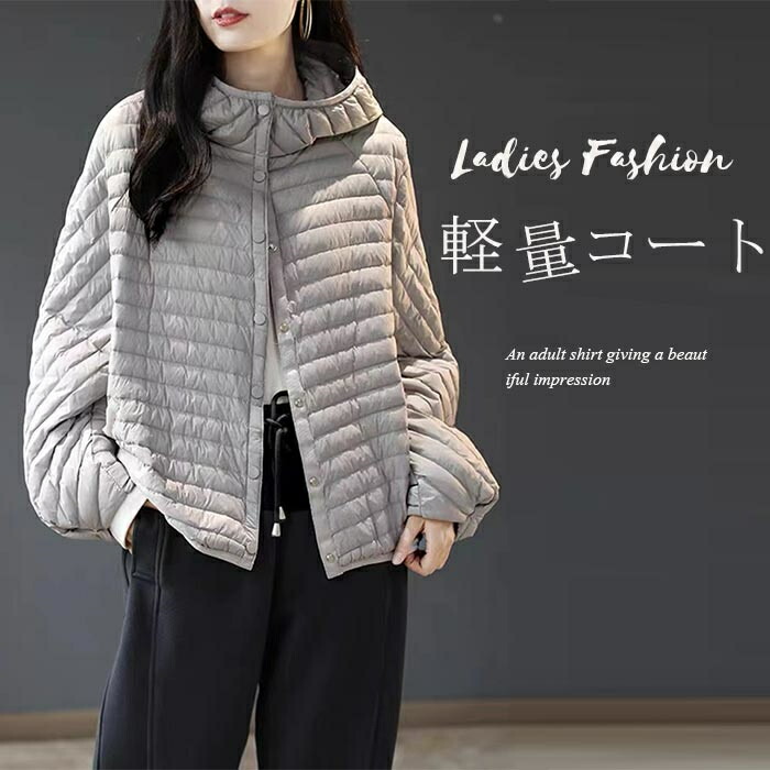 ダウンジャケット レディース 秋冬 ダウンコート 軽量 フード付き 長袖 コート ジャケット 無地 アウター 体型カバー ライトダウン 防寒コートショート丈 あったか 暖かい 防 スタンドカラー