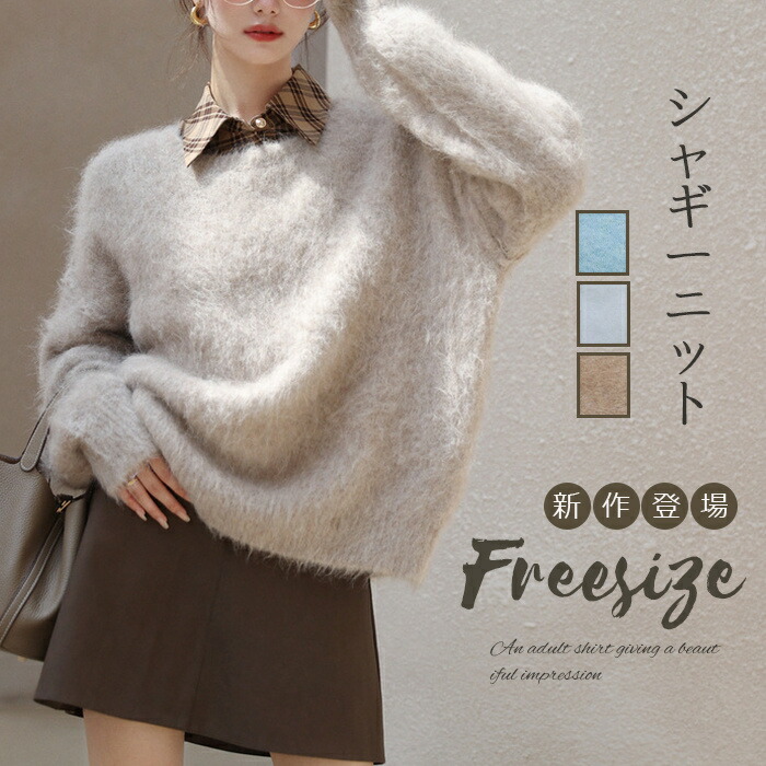 ニットセーター セーター レディース シャギーニット モヘア ニット 長袖 長袖セーター プルオーバー ニットソー インナー 秋 冬 ショート 秋冬 無地 もこもこ シャギー トッ ふわふわ