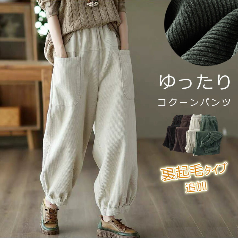 コーデュロイ パンツ レディース 秋冬 バルーンパンツ サーカスパンツ 裏起毛 秋 春 ワイド ボトムス 大きいサイズ コクーン ロングパンツ サルエルパンツ ハロンパンツ ウエストゴム