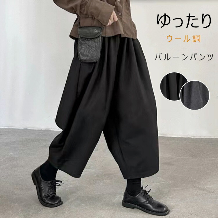 ワイドパンツ レディース 秋冬 ウール調 パンツ 九分丈 コクーンパンツ 大きいサイズ ゆったり 体型カバー バルーン ガウチョパンツ フェイクウール サルエルパンツ サーカスパンツ バルーンパンツ