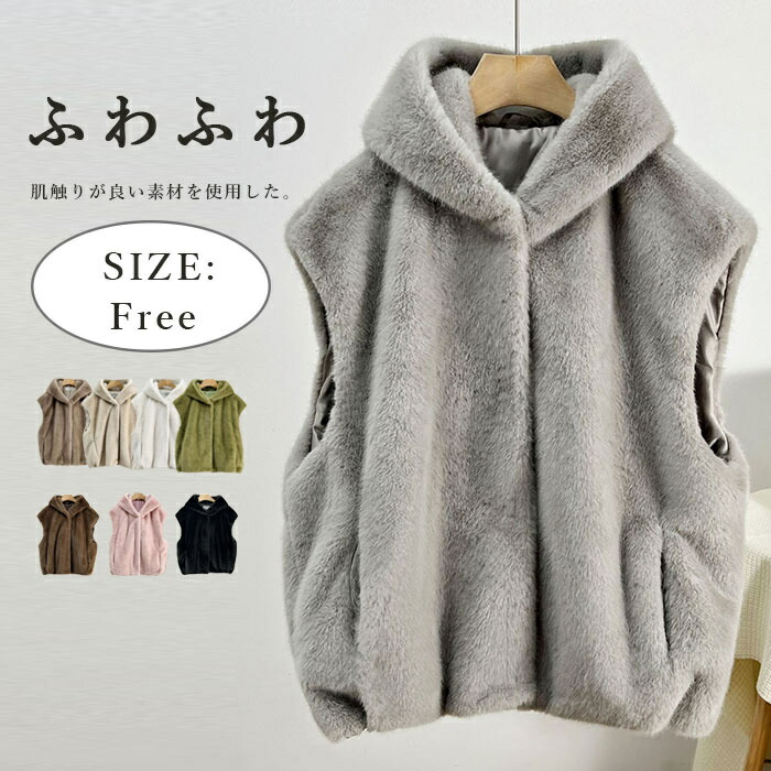 ファーベスト フード付き レディース ベスト ショート丈 フェイクファー 秋冬 ボアベスト ノースリーブ ボア ジレ コート アウター 前開き パーカー ボアアウター ショートベスト 暖かい 冬 上品