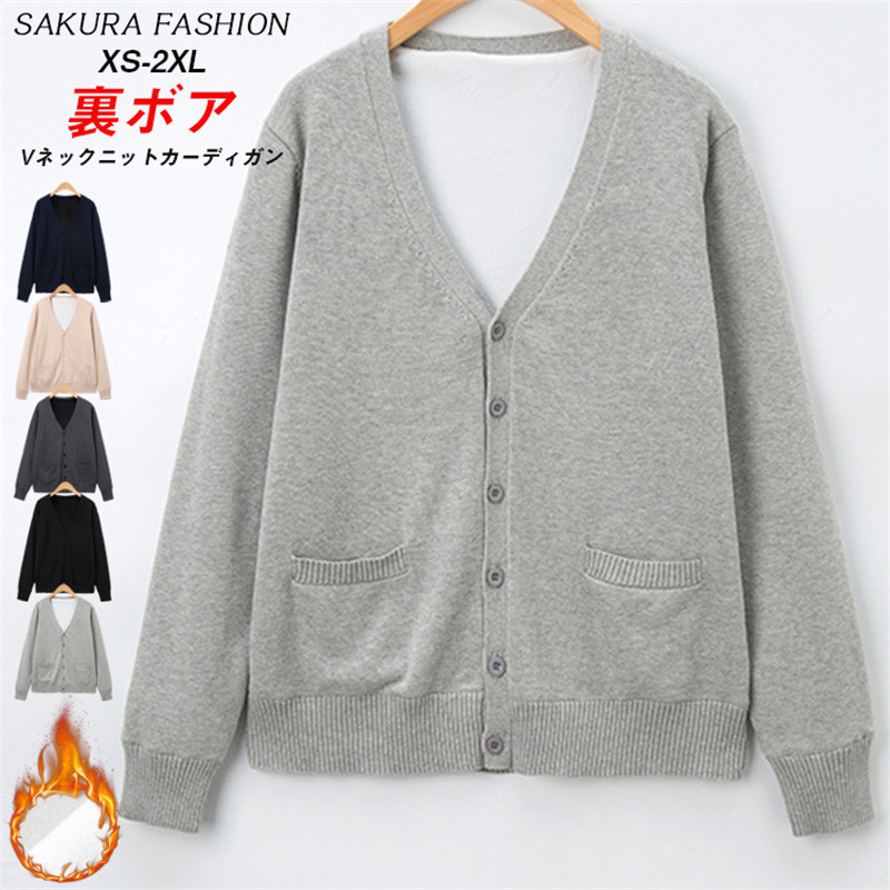 裏起毛制服カーディガン ブラック 黒 ベージュ ライトグレー ダークグレー ネイビー 黒 紺 灰色 ベージュ 2 3 無地 シンプル ベーシック 冬 防寒 普段着