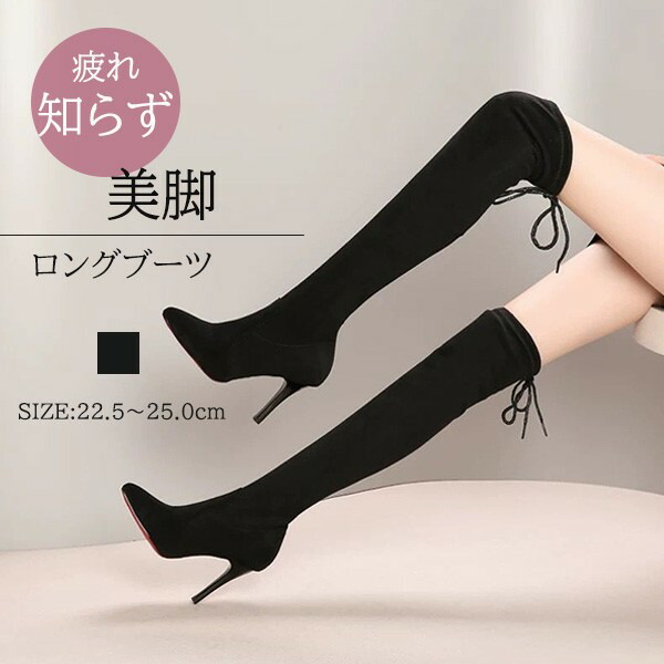 ロングブーツ ニーハイブーツ 美脚 7.5cmヒール ブーツ セクシー ニーハイ 細見え ピンヒール 細ヒール ハイヒール 秋冬 レディース きれいめ おしゃれ 大人かわいい フェミニン シン 可愛い