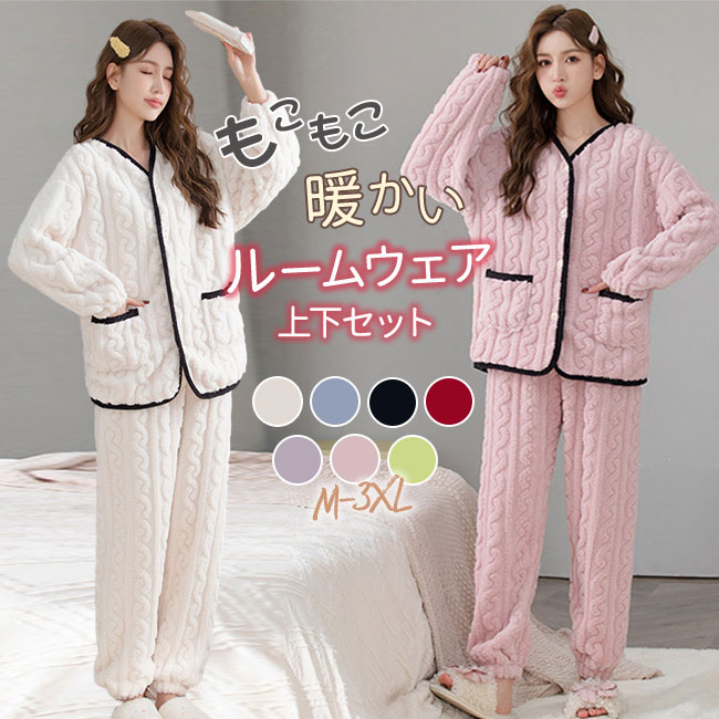 秋冬新作 パジャマ モコモコルームウェア ア レディースパジャマ フランネル 大きいサイズ 暖かい上下セッ ルームウェア 上下セット レディース フリース マイクロファイバー ゆったり 冬 部屋 厚手