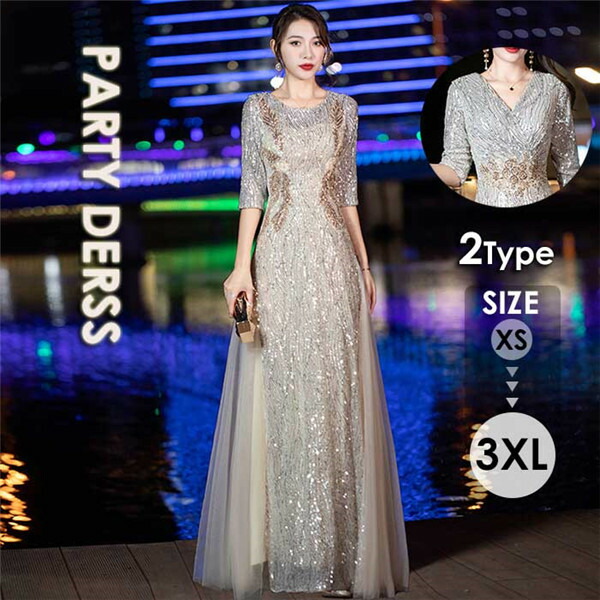 ロングドレス 母親 結婚式 ドレス 大人 ピアノ 発表会 イブニングドレス カラオケドレス 衣装 シャンパン キラキラ パーティードレス スパンコール衣装 ミセス ステージドレス
