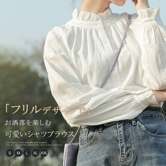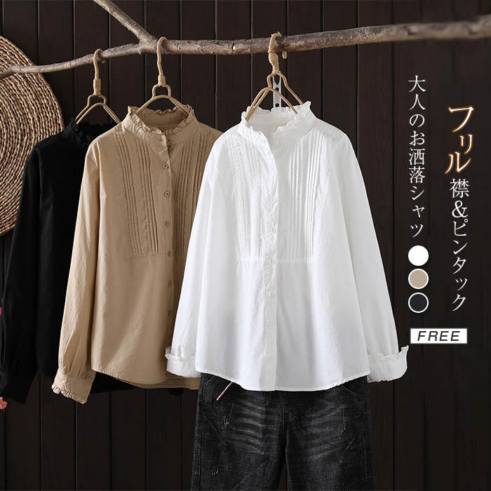 フリル襟 シャツ ブラウス 長袖 立ち襟 ピンタック シャツブラウス レディース トップス 羽織り 春 秋 フォーマル 大人 可愛い ファッション おしゃれ きれいめ ゆったり