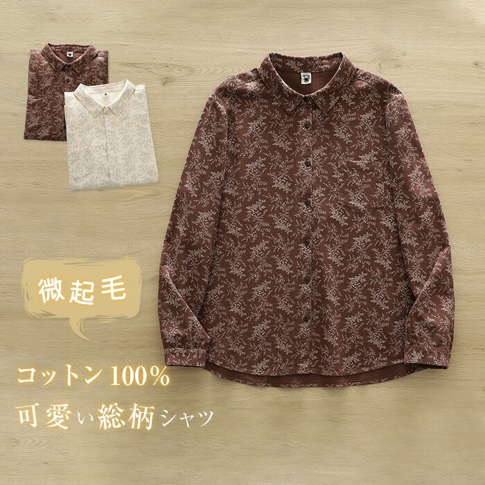 花柄 シャツ レディース 綿100% ネルシャツ 微起毛 春 秋 冬 総柄 大人 可愛い あったか シャツブラウス 長袖 トップス 羽織り 長袖シャツ 重ね着 カジュアル ナチュラル