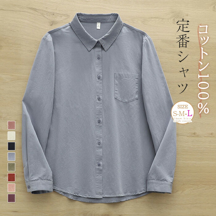カラフル 綿100% シャツ ブラウス レディース 定番シャツ 春 秋 冬 コットン100% 大人 着回し シャツブラウス 長袖 シンプル トップス インナー 重ね着 フォーマル 無地 体 カジュアル