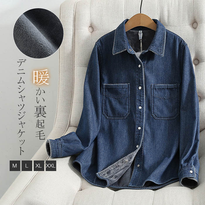 デニム シャツ レディース 裏起毛 あったか 春 秋 冬 裏起毛シャツ 大人 デニムシャツ 長袖 シンプル トップス 無地 重ね着 ライトコート シャツジャケット ゆったり 体型カバー 通 カジュアル