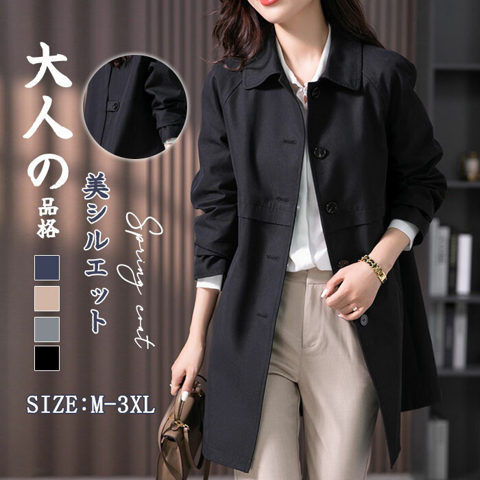 トレンチコート レディース ミドル丈 aライン スリット 無地 おしゃれ 春秋 アウター スプリングコート 就活 ビジネス 定番 通勤 コート 春 夏 ロングコート ショート トレンチ 大きい 羽織り