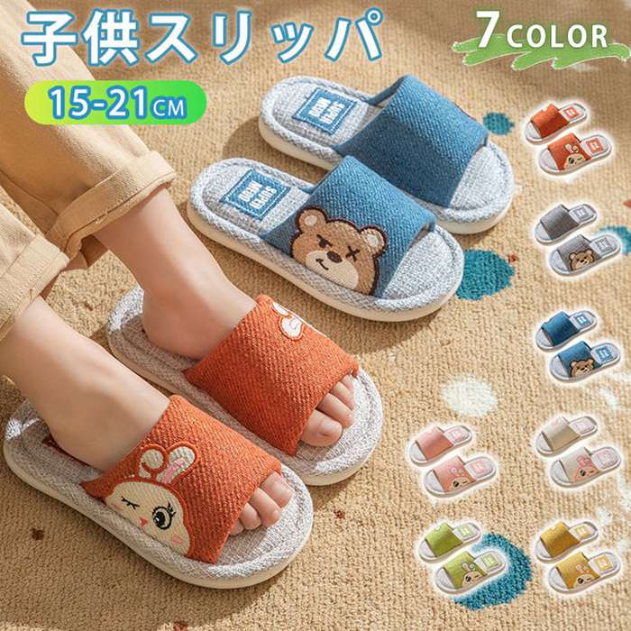 子供用 スリッパ 綿麻スリッパ 子ども ルームシューズ 可愛い 疲れない 静音 秋 冬 春 夏 オールシーズン 未就学 小学生 通気性抜群 履きやすい