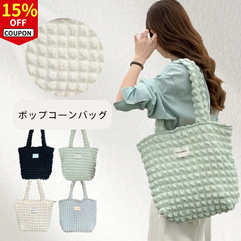 一部ポップコーンバッグ トートバッグ かわいい ポコポコ レディース 軽量 キルティング ふわふわ 可愛い ミニトート 多機能 通勤 通学 肩掛け 収納バッグ A4 大きめ エコ 手提げ