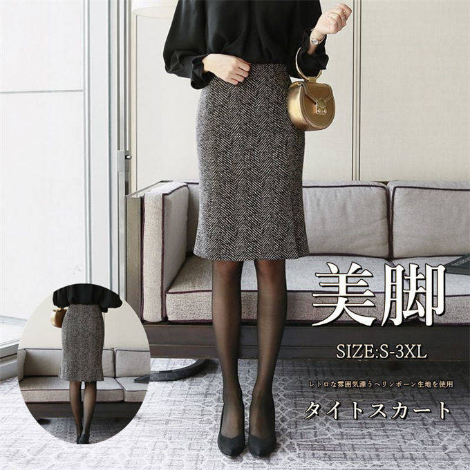 タイトスカート ハイウエスト ツイードスカート ミディアム丈 キレイめ 膝丈スカート レディース ひざ丈スカート エレガント 細見えスカート スリット 通勤 OL ボトムス フォーマル オフ お洒落