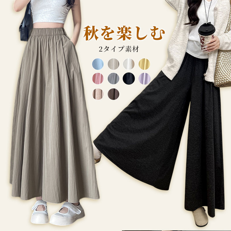 感謝祭限定2点以上10%OFFパンツ ワイドパンツ レディース 秋 柔らかい ウエストゴム サイドポケット 涼感 冷感 細見え 着痩せ ボトムス ゆったり 大きいサイズ S M L 夏 秋冬 春夏 春