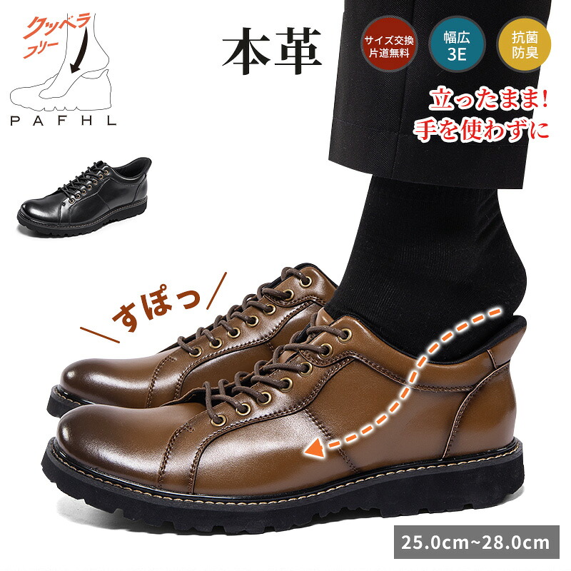 立ったまま履ける靴 カジュアルシューズ 走れる 本革 メンズ ビジネスシューズ 柔らか 撥水 幅広 3E 疲れない 滑り止め 光沢感 仕事 オフィス 靴擦れ防止 革靴 ブラック インスタフィッ 紳士靴
