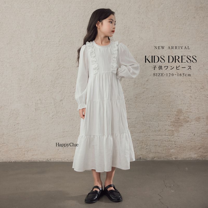 キッズドレス ワンピース ロング丈 カジュアルワンピース 子ども ロング 無地 体型カバー ドレス キッズドレス結婚式 冬 白ワンピース 子供 女の子 子供服 喪服 法事 白 長袖 秋 120 1 春