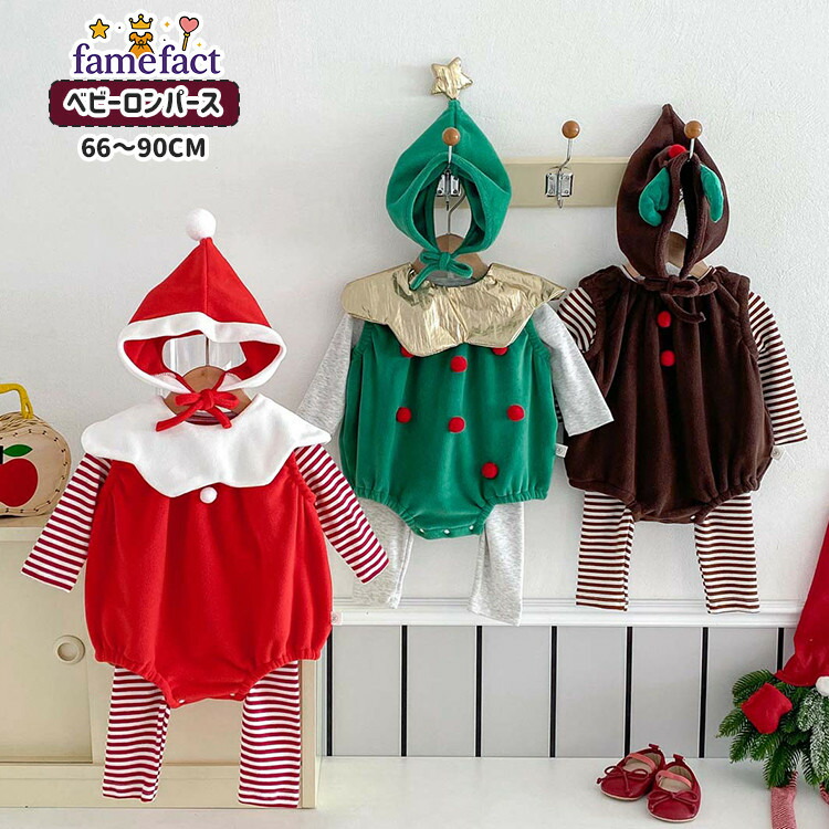 フリース 赤ちゃん ベビー服 帽子 パンツ 防寒 長袖 ストレッチ ワイドパンツ クリスマス 無袖 ロンパース レッド サンタ グリーン クリスマスツリー ブラウン キッズ カバーオール 棉 トナカイ