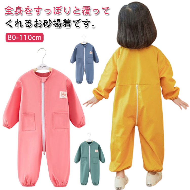 プレイウェア お砂場着 子供 オーバーオール キッズ 長袖 ロンパース 女の子 男の子 つなぎ プルオーバー 撥水加工 スモック 子供服 子ども ジャンプスーツ ダブルファスナー付き 遊び着 ベビー