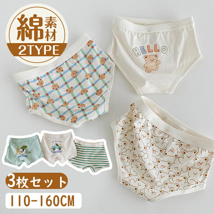 ショーツ 男の子 ボクサーパンツ ブリーフパンツ ベビーショーツ ベビー 2タイプ キッズ パンツ 下着 ガールズ 綿95% 3枚組 子供ショーツ 男児 肌着 お着替え コットン 春 秋 冬 オー 夏
