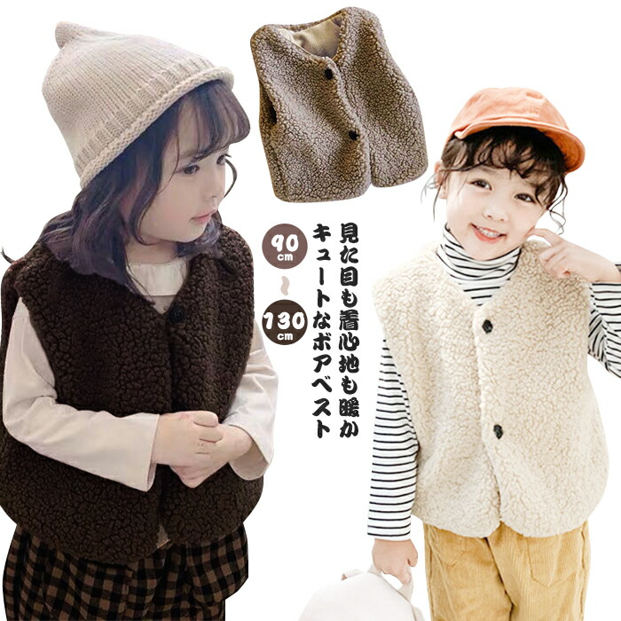 ボアベスト キッズ ベスト 女の子 ボアアウター アウター ベビー フリース モコモコ ボア もこもこ 防寒ベスト 冬キッズ ショート丈 子供服 ボタン付き ノースリーブ あたたかい 防寒 秋 暖かい