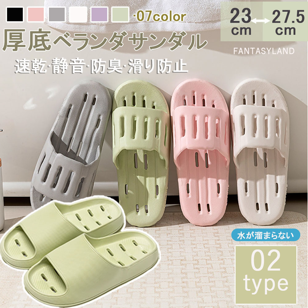 サンダル ベランダ 厚底 穴あき ベランダサンダル 選べる6色 ふんわり ふわふわ クッション シャワーサンダル かわいい おしゃれ スリッパ 夏 軽い 滑り止め バススリッパ バスル 浴室