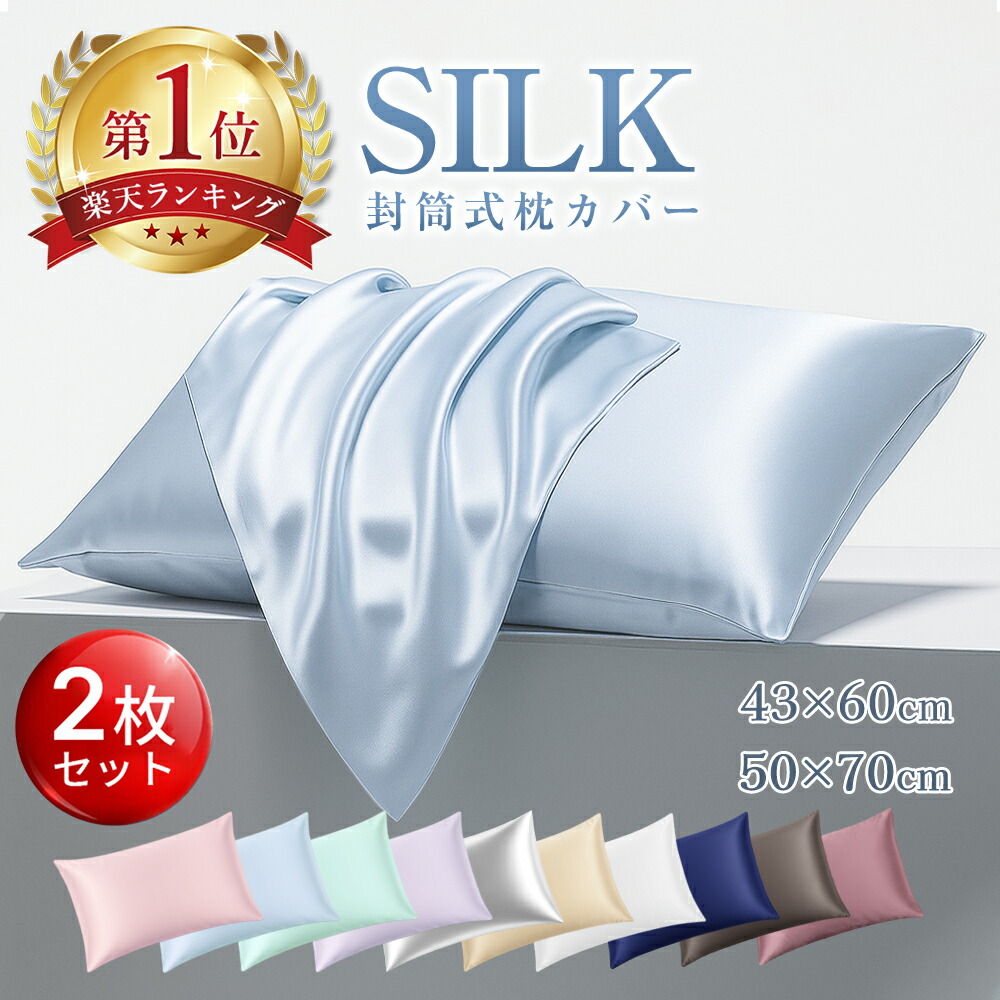 シルク枕カバー 冷感 シルク枕 洗濯機 洗える 乾燥機対応 43×60 2枚セット 50×70 美髪 美肌 ダメージヘア ヘアケア スキンケア さらさら髪 ジャブジャブ洗える ピローケース 摩擦レス