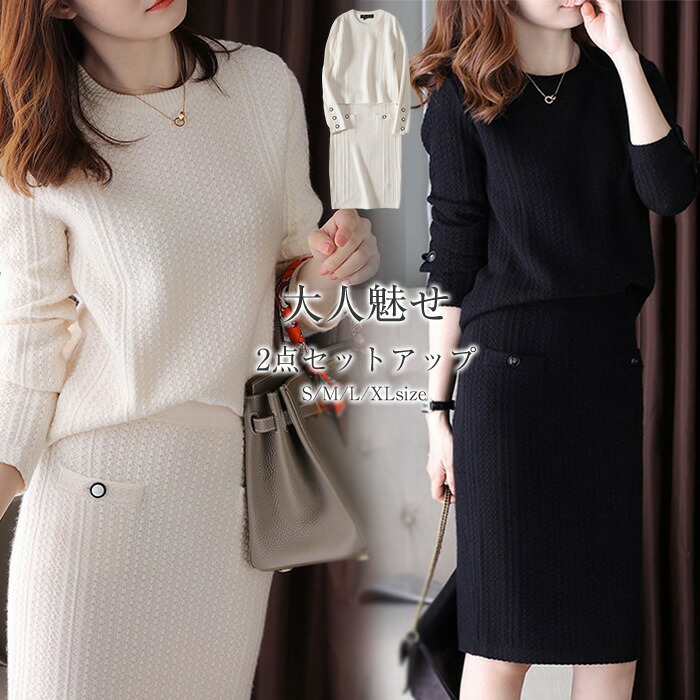 セットアップ レディース 秋 冬 セーター ニット スカート タイトスカート スカートスーツ 2点セット スカート ロング丈 トップス 長袖 春 秋 冬 ゆったり 大きいサイズ 体型カバー